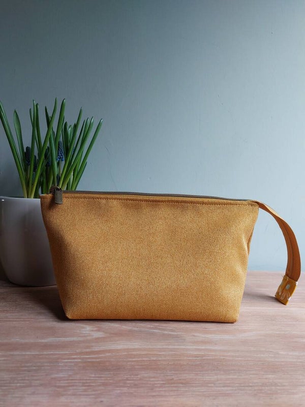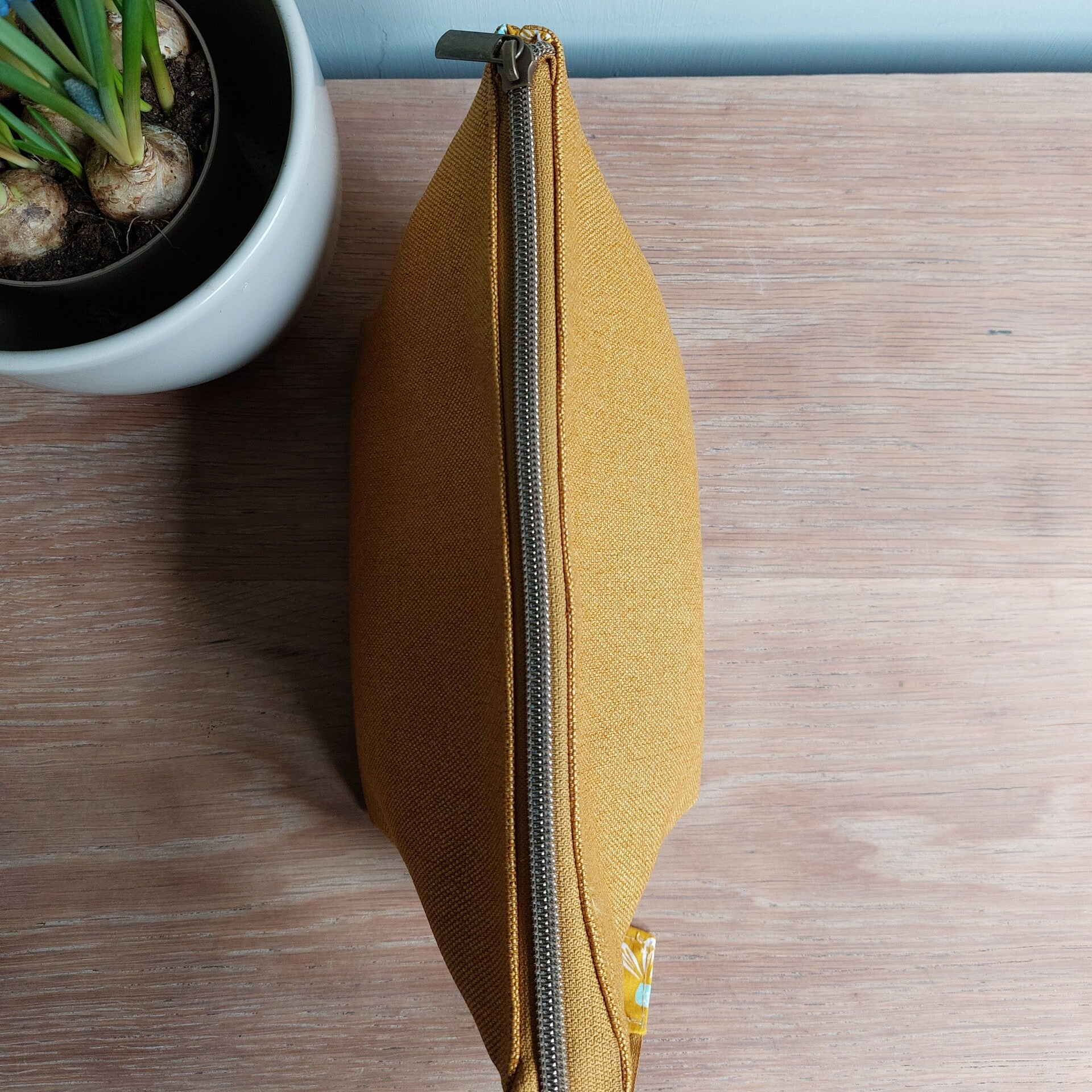 Oker tassenstof met binnenin een leuke katoen met bloemetjesprint.